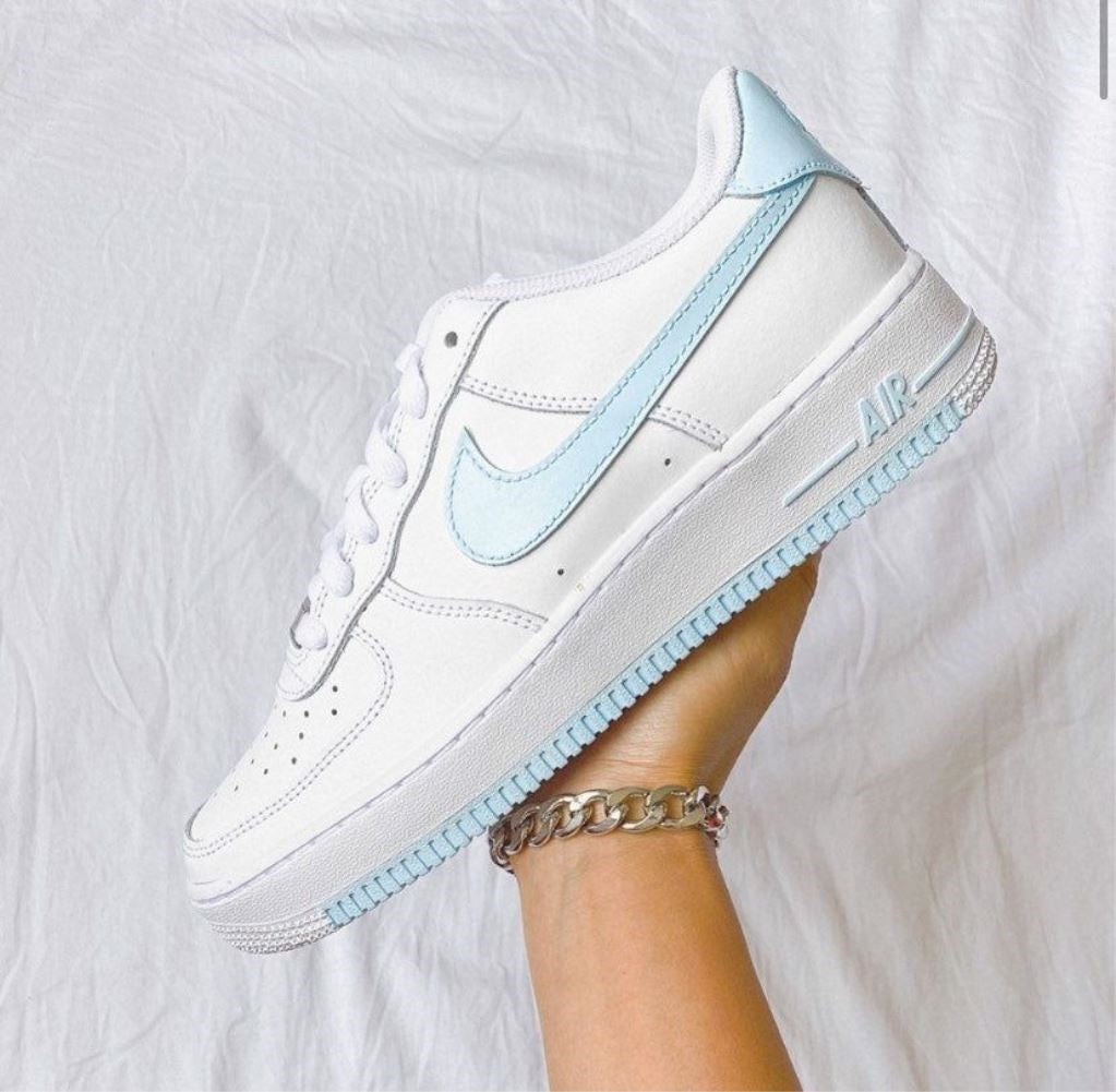 Brave the future in these custom Baby Blue Air Force 1s - a bold choice for the risk-taking fashionista who's not afraid to stand out! With its sleek design and vibrant color, you're sure to make a statement. Embrace your daring side and take a step towards style you can call your own.