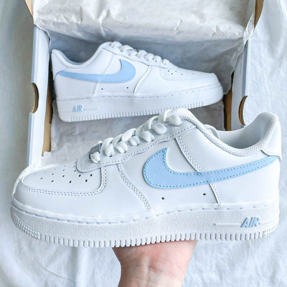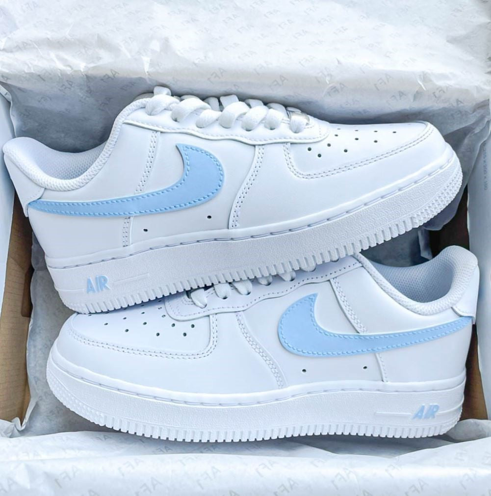 Take a leap of style with these Baby Blue Air Force 1s! Customized with a classic baby blue hue, these sneakers provide a bold look that's perfect for the risk-taker's wardrobe. Rock these with confidence and stand out from the crowd!