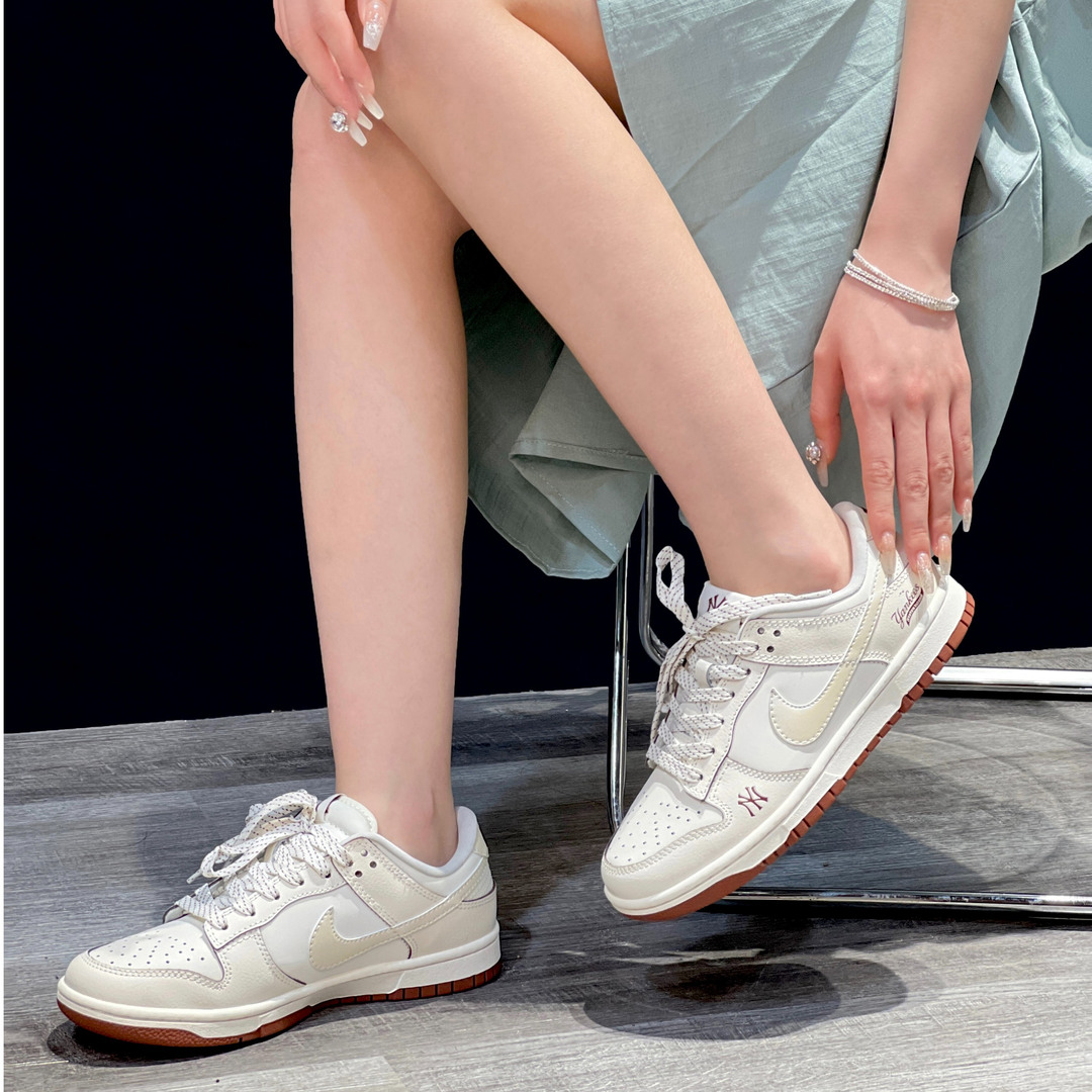 Step up your style with these sleek beige Nike Dunk sneakers. With a custom fit, they offer superior comfort for all-day wear. Dare to make a statement and take your look to the next level with these must-have kicks!