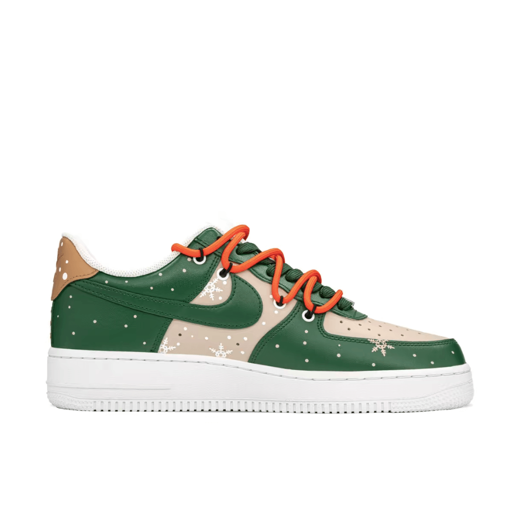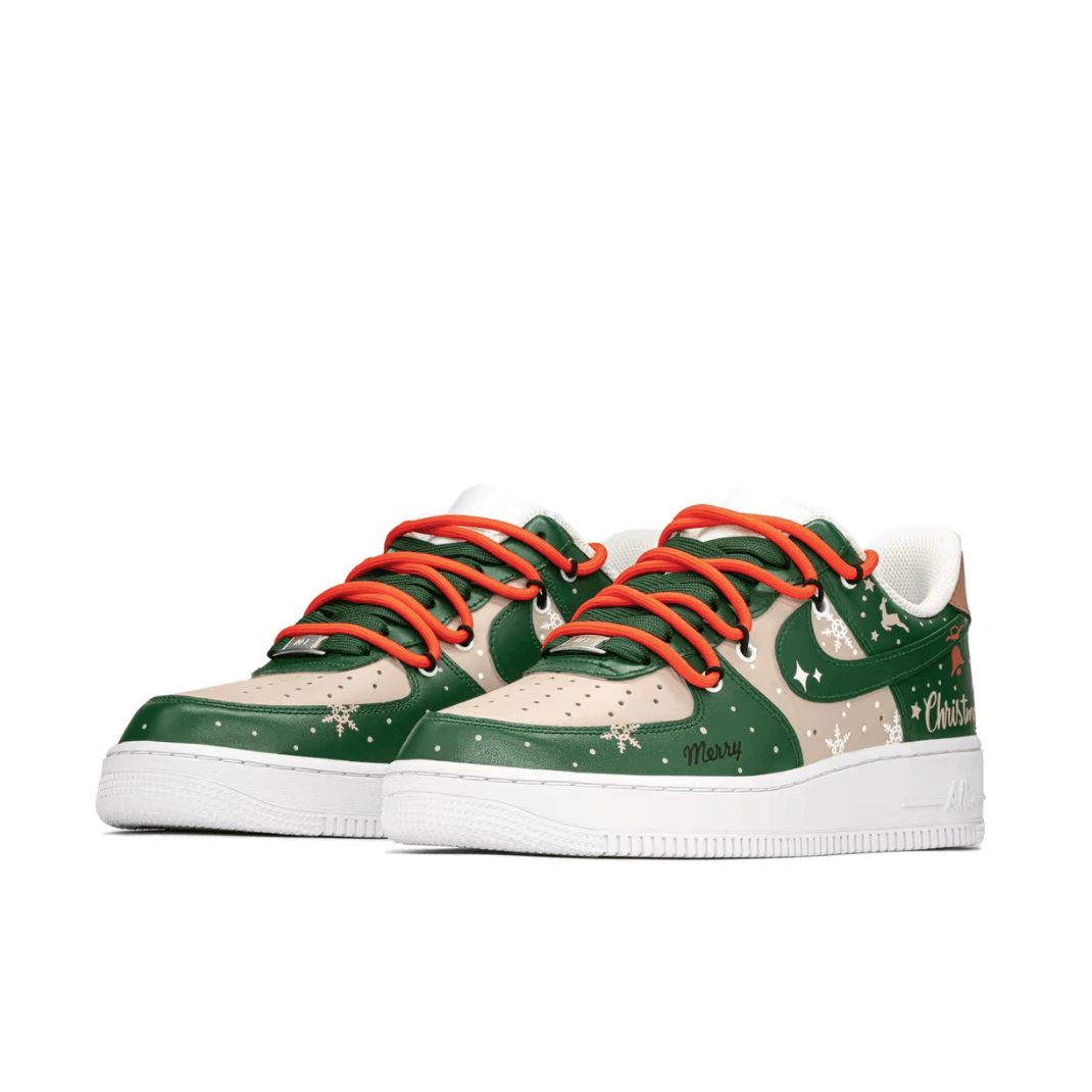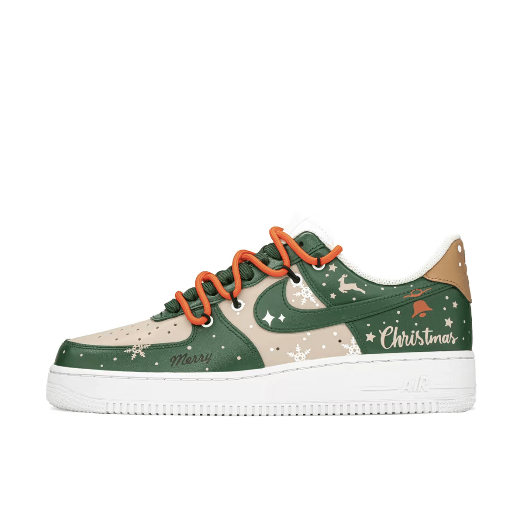 Christmas Gift Xmas Custom Air Force 1 Apricot Green Snowflake Elk Print