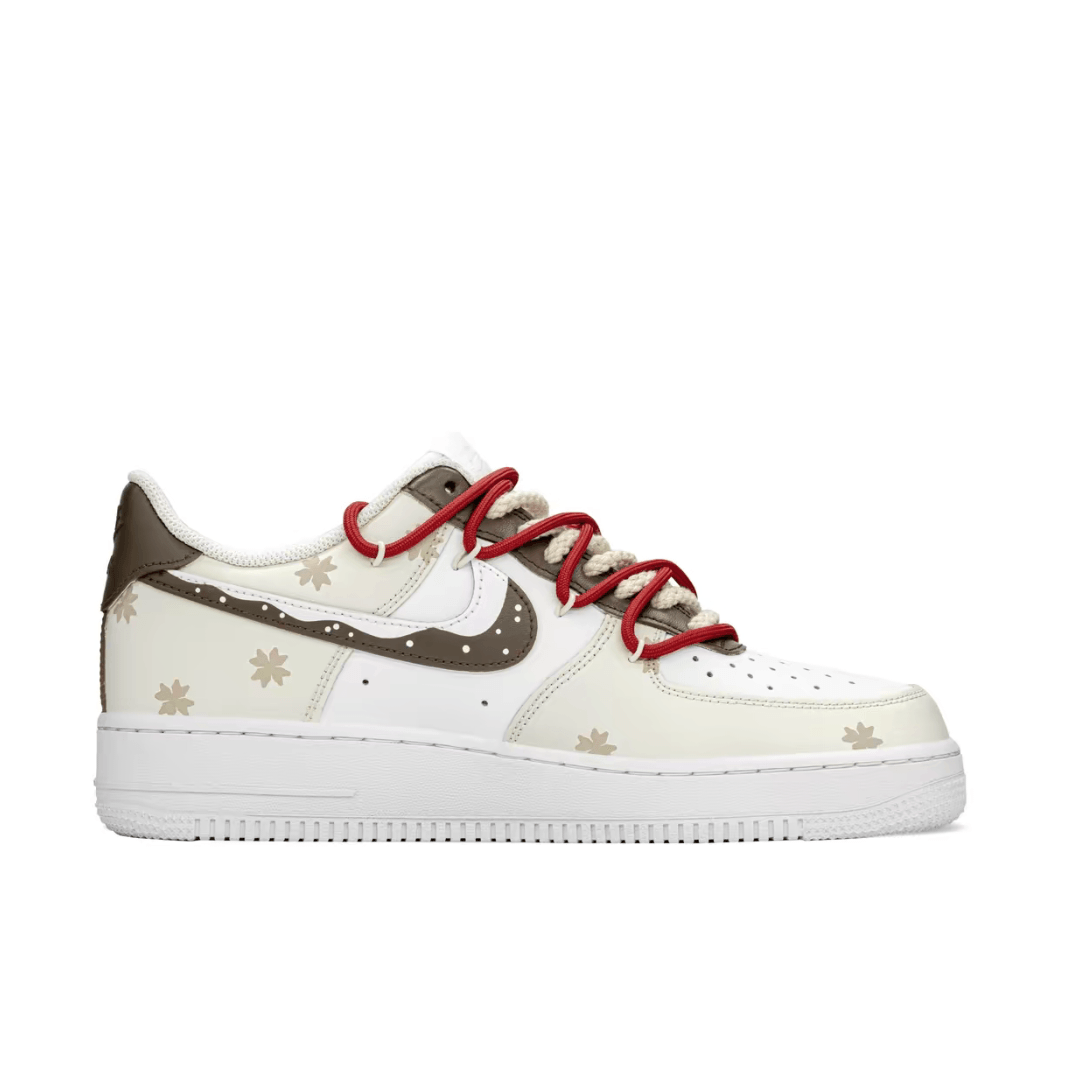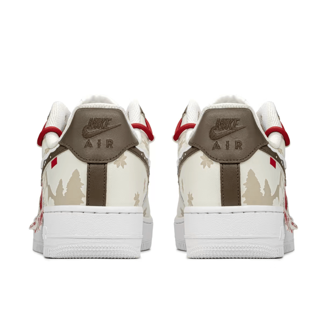 Christmas Gift Xmas Custom Air Force 1 White Khaki Red Snowflake And Elk