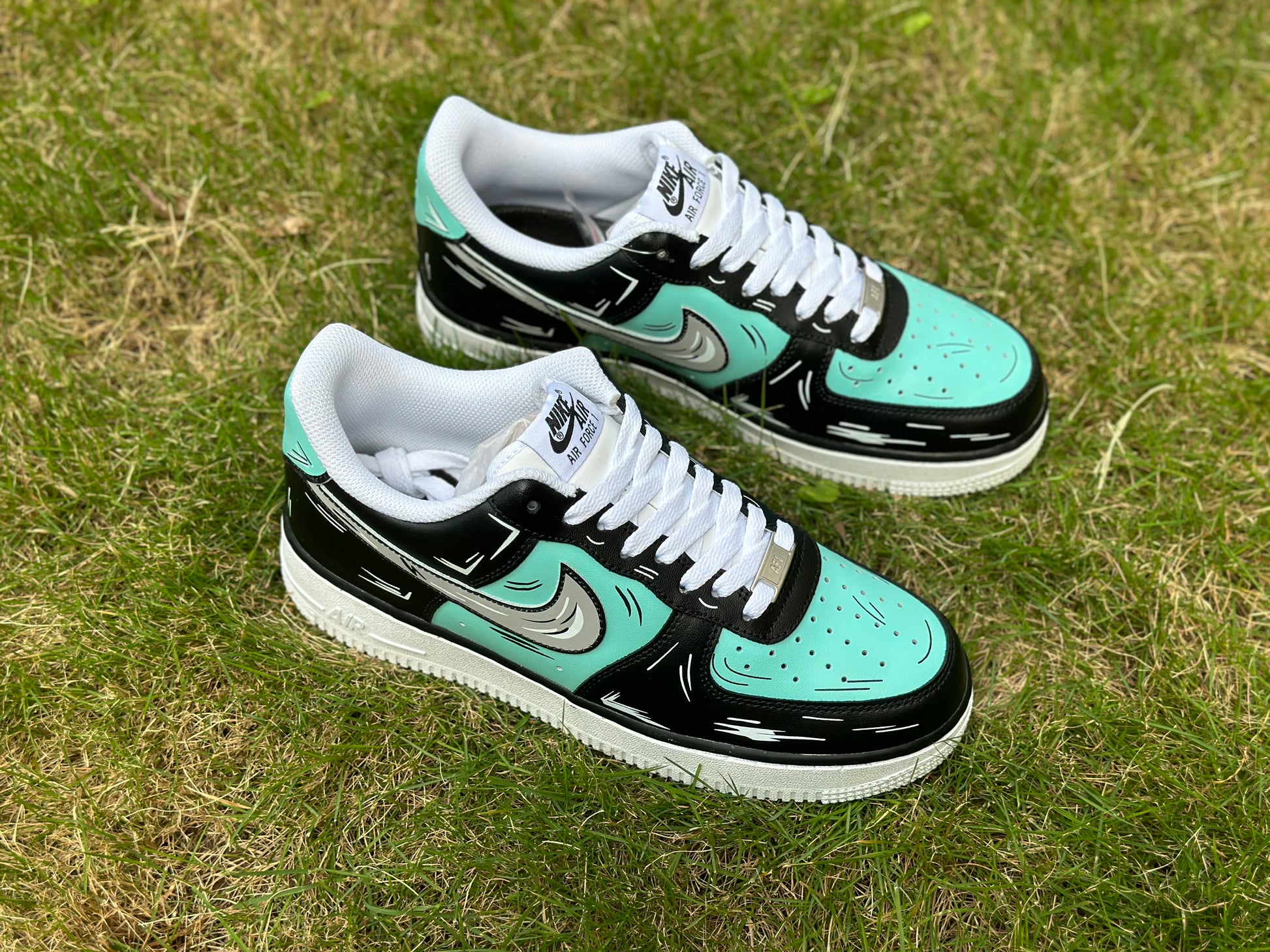 Custom Air Force 1 Teal Blue Black Cartoon Lines
