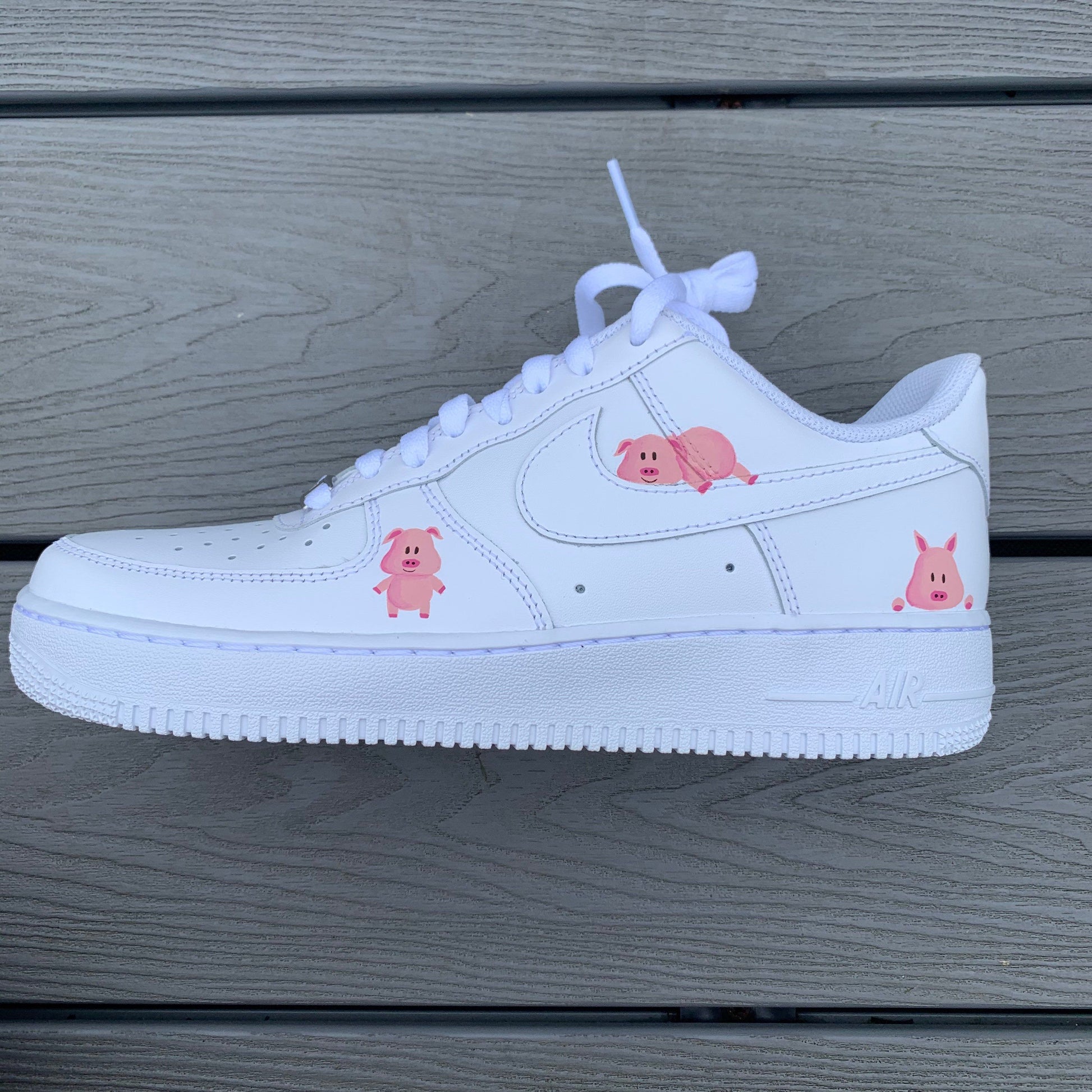 Whether you're a sneakerhead looking for a new statement piece or just someone who loves cute and quirky designs, these custom shoes are a must - have. The high - quality craftsmanship ensures durability while the playful pink pig pattern adds a fun touch to any outfit. Upgrade your sneaker game with these eye - catching Custom AF1s!